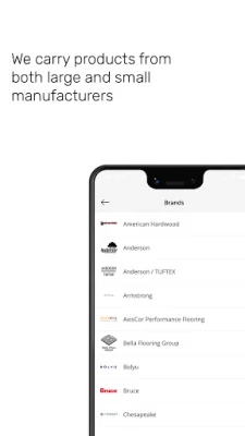 Through our app, contractors and builders can access the latest flooring products that we have in stock. Register within the App for the best price, view specials, stay up to date about new products or special deals, track orders or view their purchase history and receive customer support.