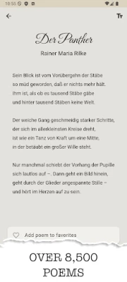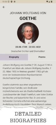 Whether it's classics like Goethe and Schiller or hidden gems, this app makes it easy to explore the diversity of German poetry.