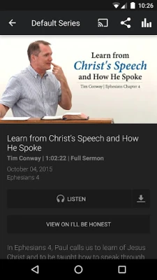 This app will allow you to easily listen to or download the newest content that is posted on I'll Be Honest. The messages are organized by series, topic, and speaker.